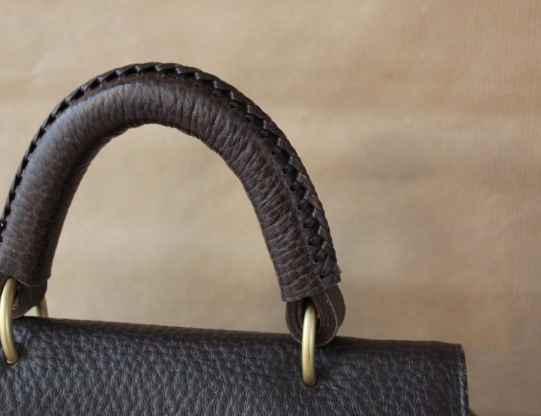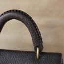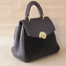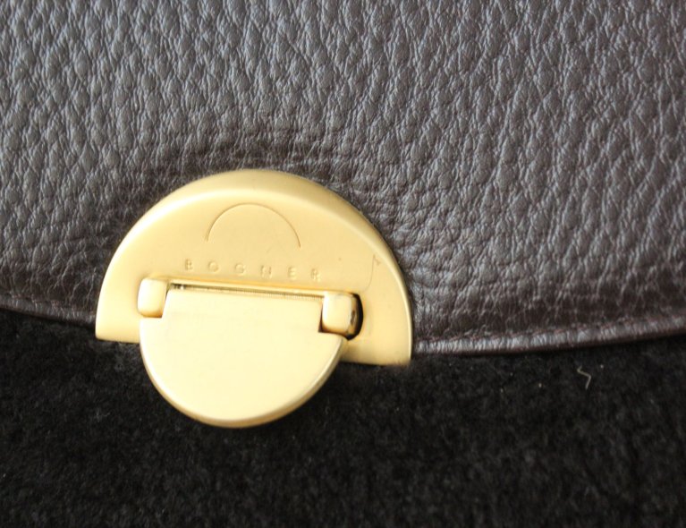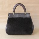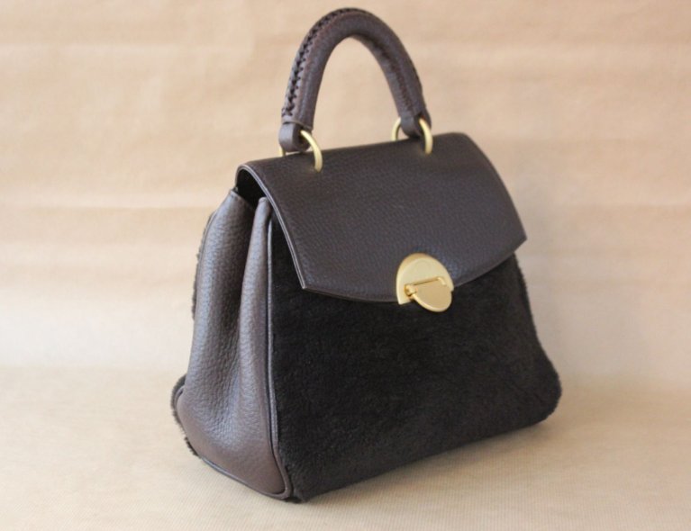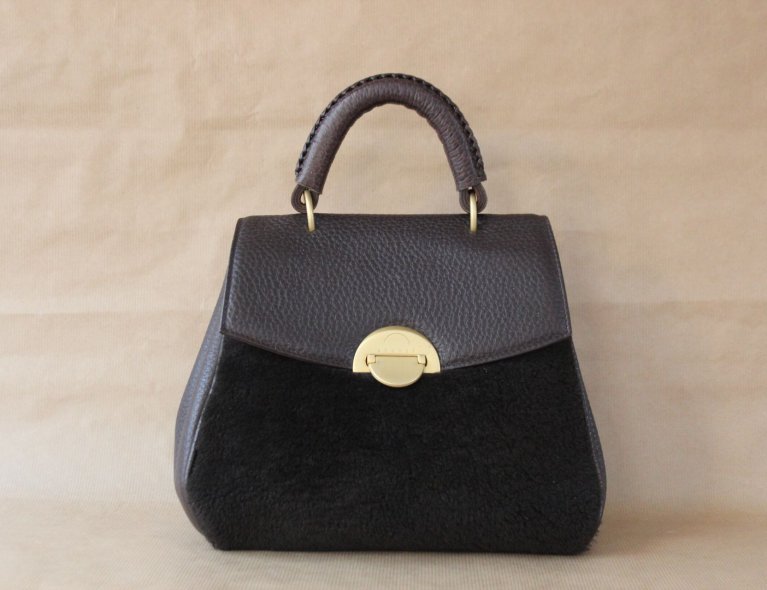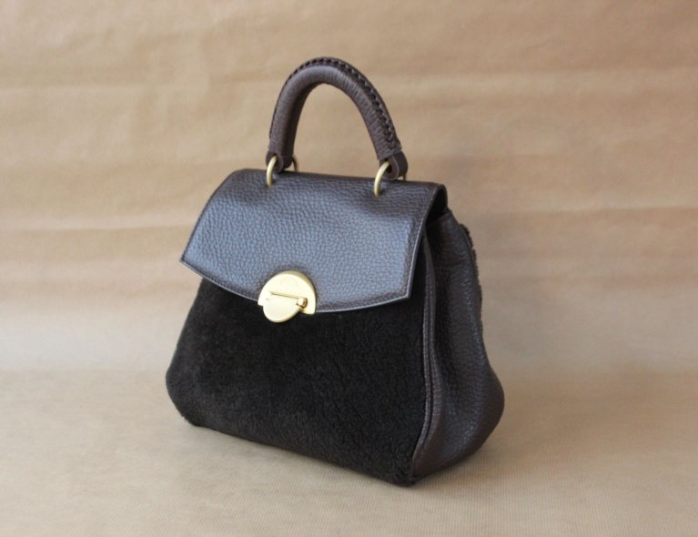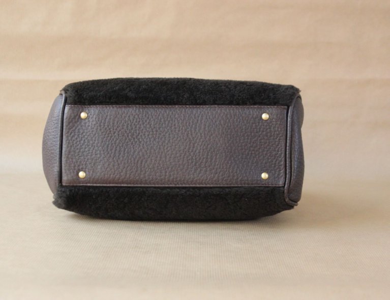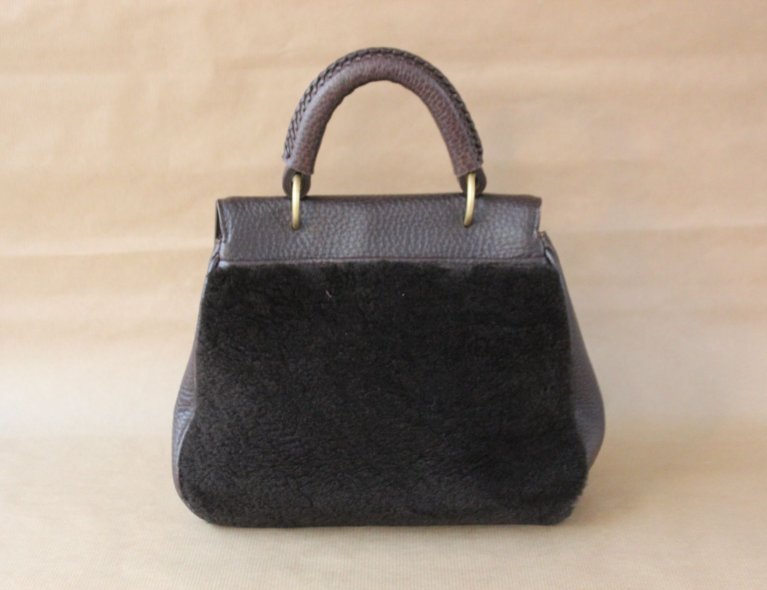 Charmante dunkelbraune Leder/Lammfelltasche mit goldfarbener Hardware (25x26x9cm), benutzt aber in gutem Zustand!