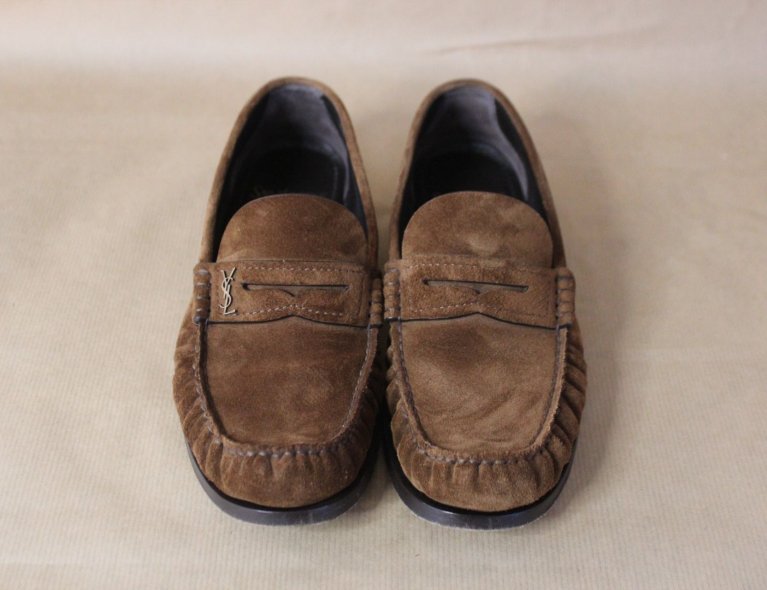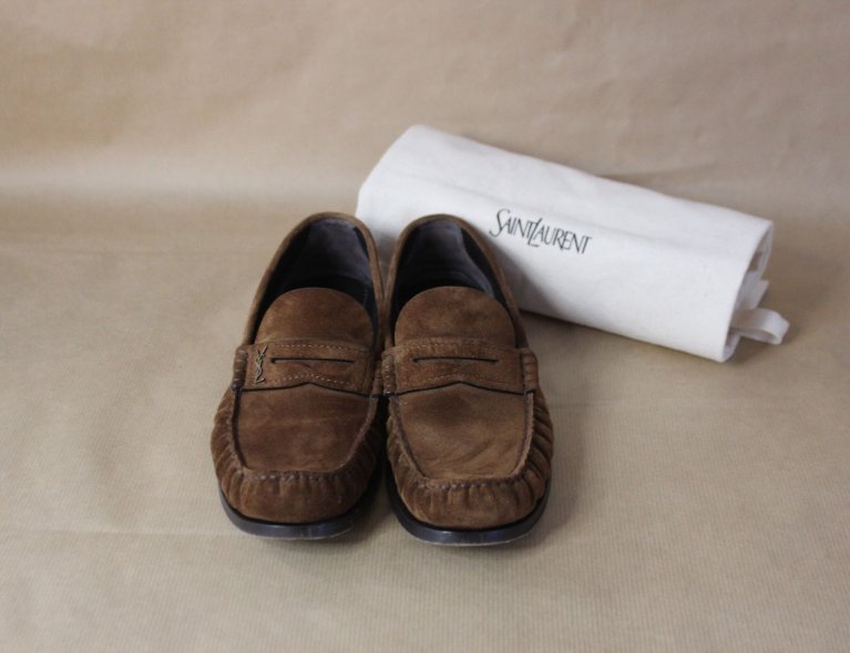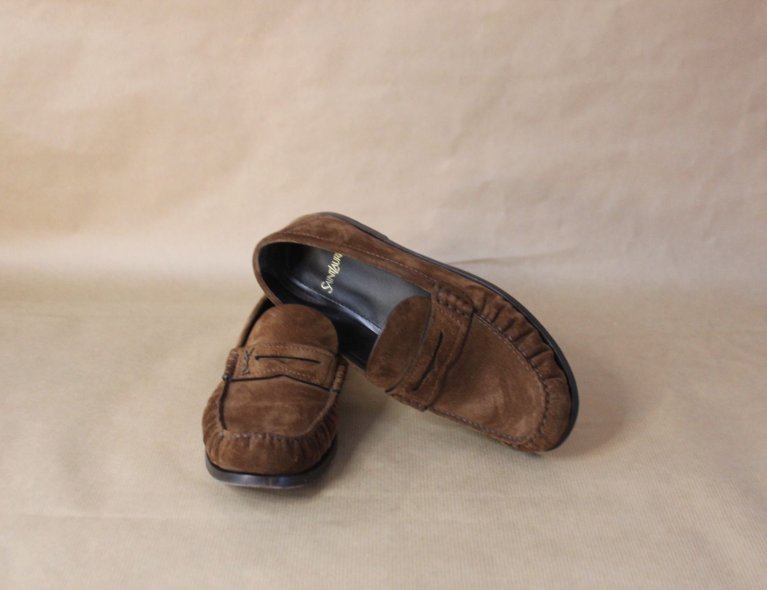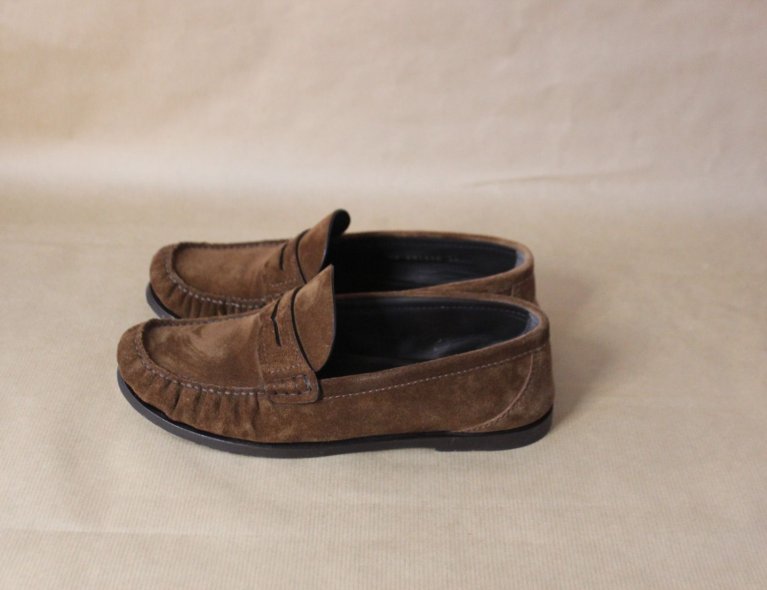 Schokobraune Wildleder-Loafer mit kleinem Label. Gr 37, 2x benutzt aber in sehr gutem Zustand.