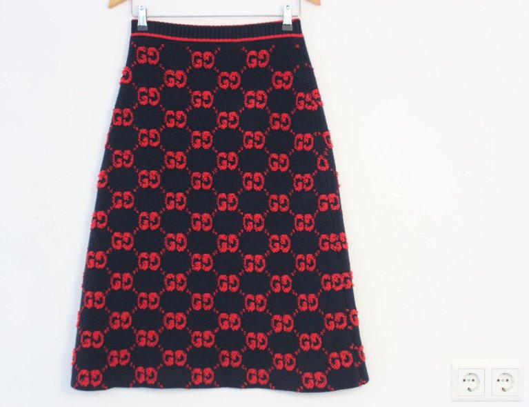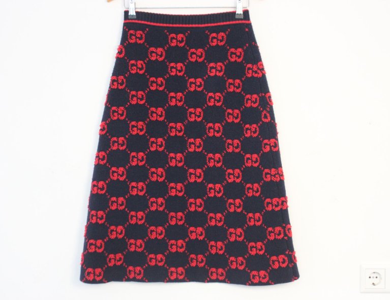 Strickrock in Midi-Länge blau/rotes Label-Muster, size M. NEU!