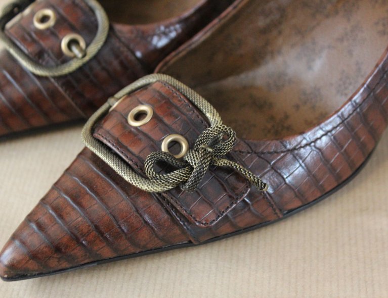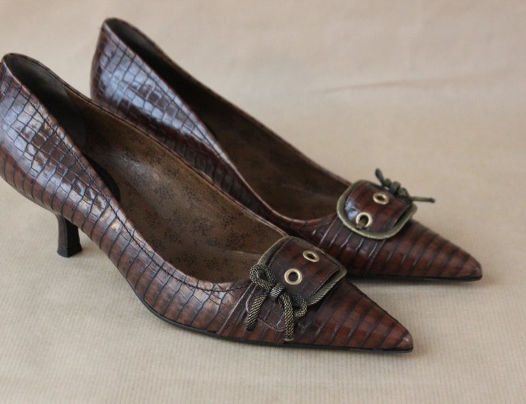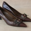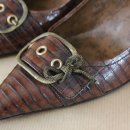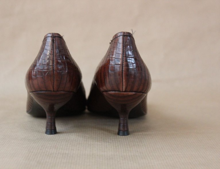 Dunkelbraune geprägte Lederpumps mit Kittenheels (5cm), Gr 37 1xgetragen.