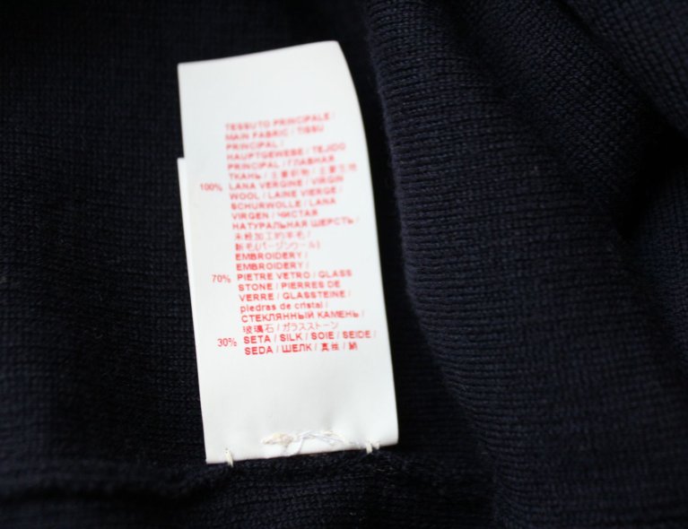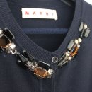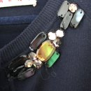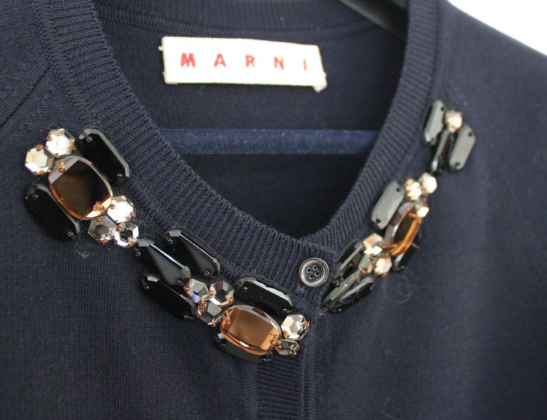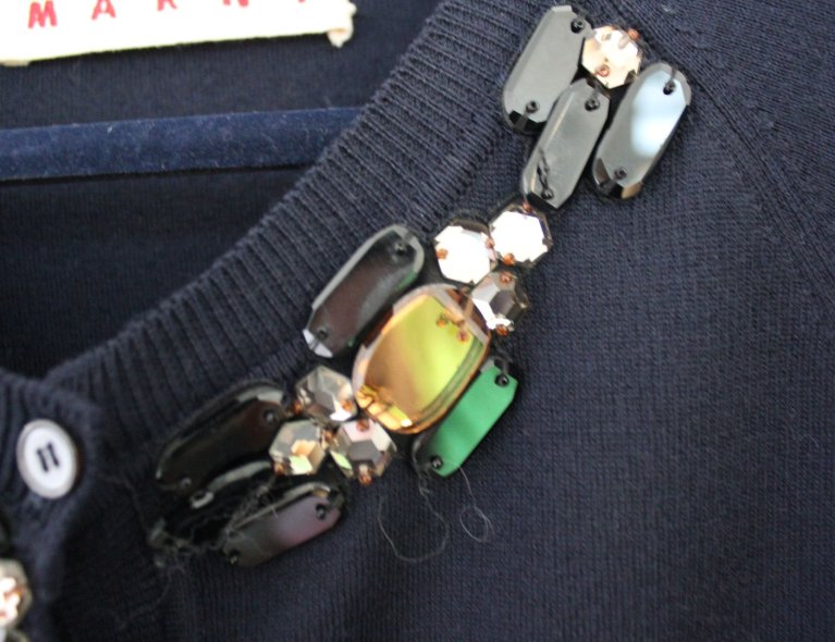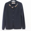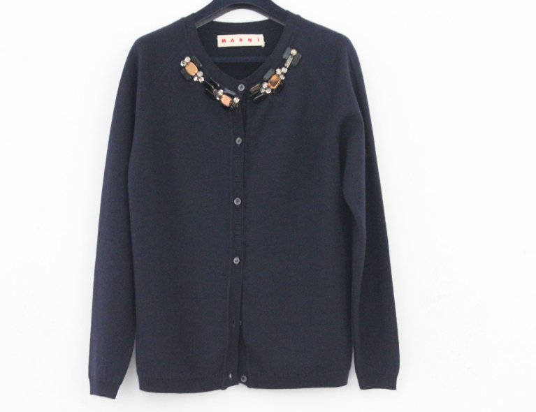 Dunkelblauer Merino-Cardigan mit Glas-Steinen, Gr itl 42.