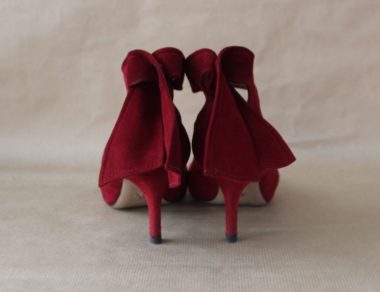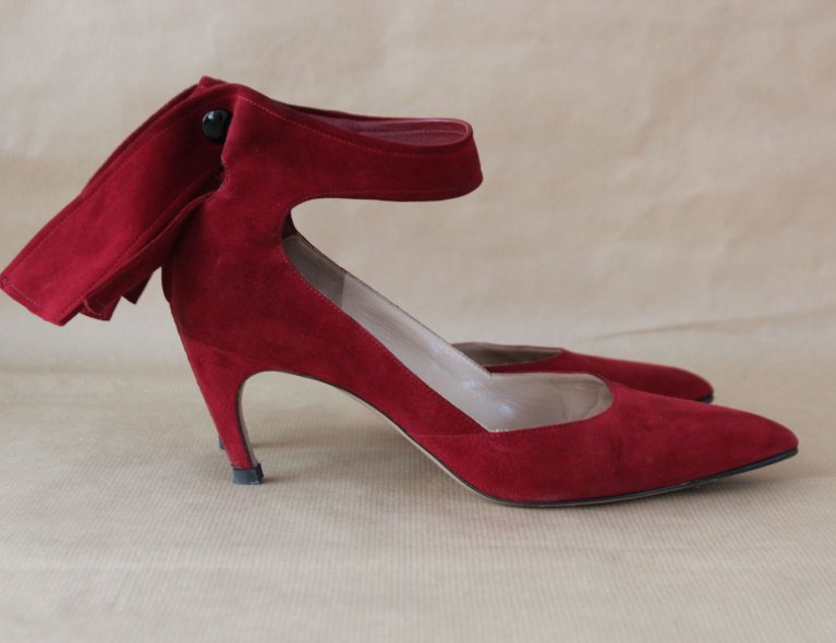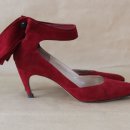 Dunkelrote WildlederPumps mit Fesselriemchen, Gr 38 ½, benutzt. Absatz 7,5 cm.