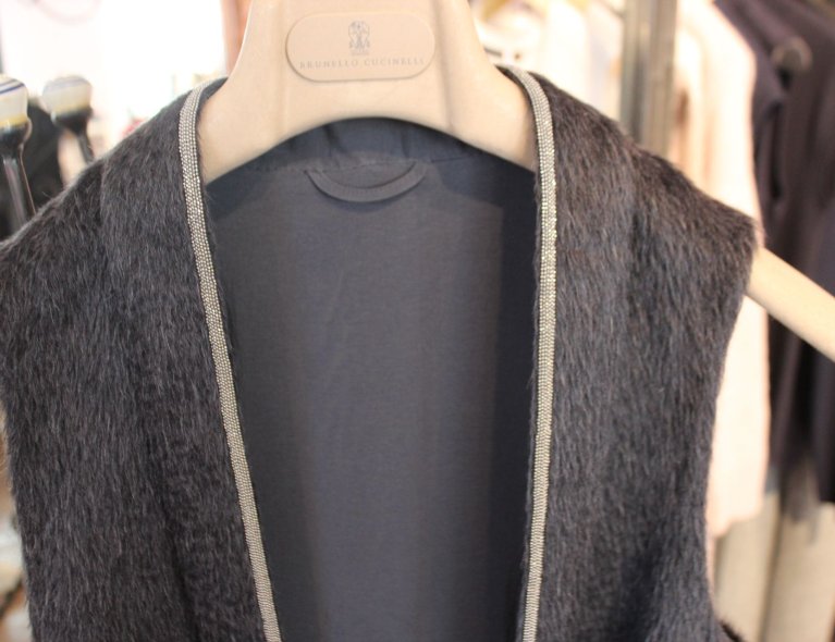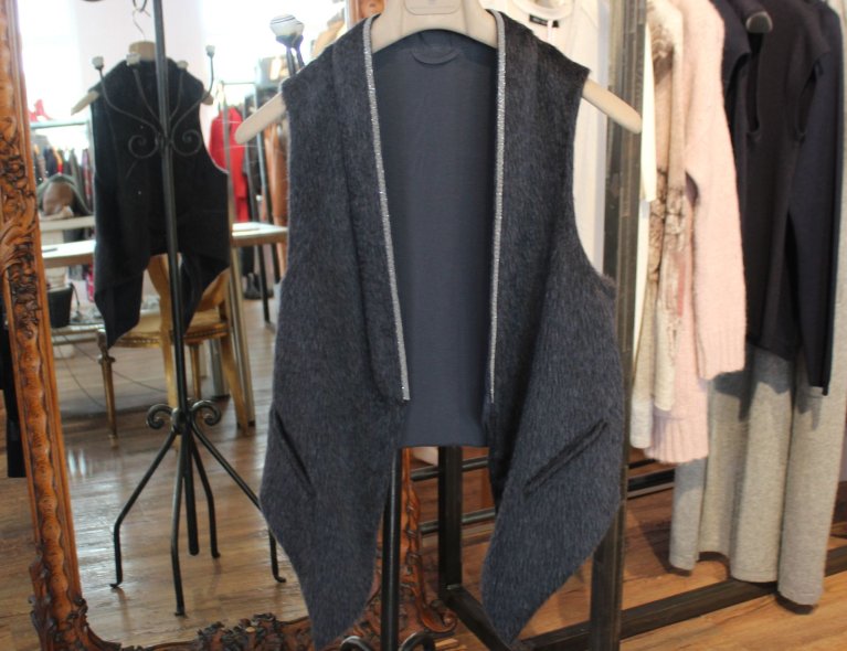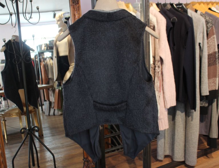 Dunkelgraue Weste aus 70 %Alpaka und 30% Wolle einer Kante aus feinen Monilli-Perlen, Gr ital. 44, top Zustand.