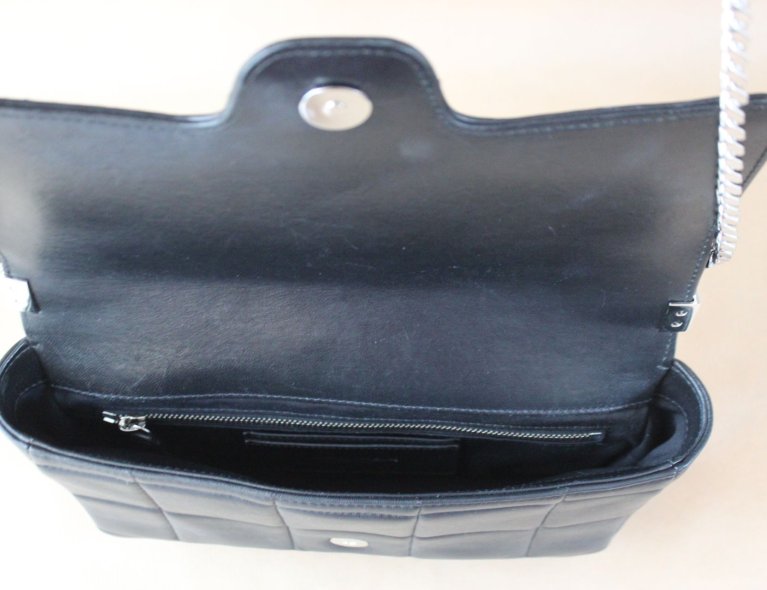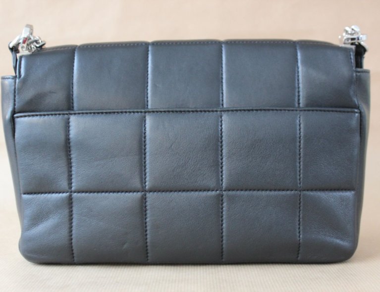 Schwarze gesteppte Nappaledertasche mit Kette. Top condition, 27x18x5cm