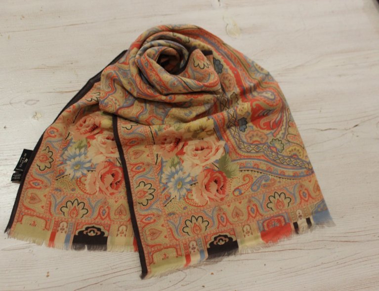 Wunderschön gemusterter Schal in 70%Wolle, 30%Seide, 162x66cm, top condition!