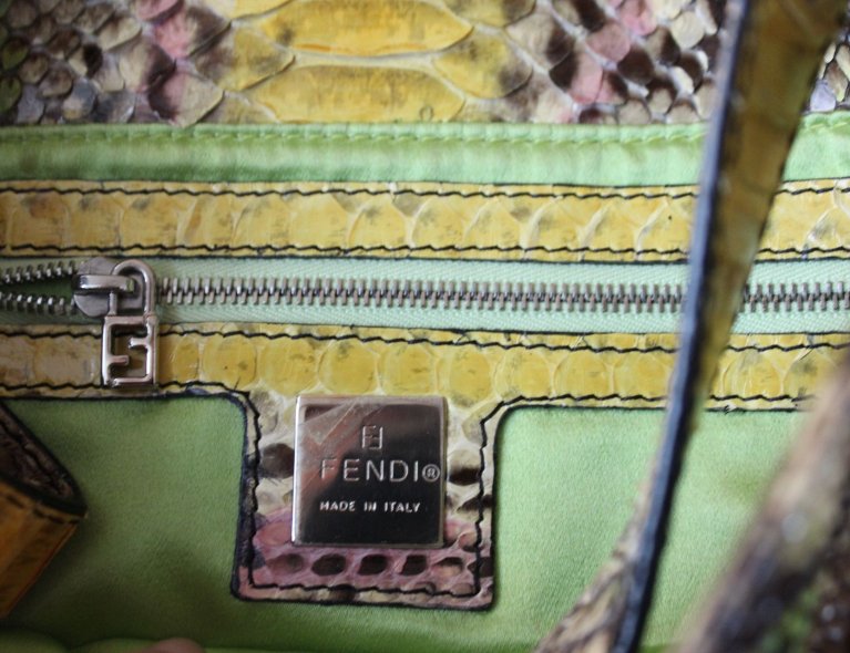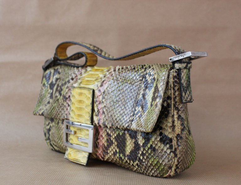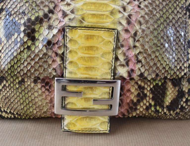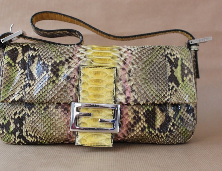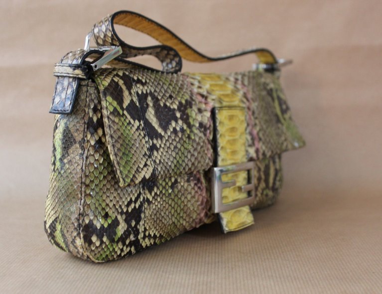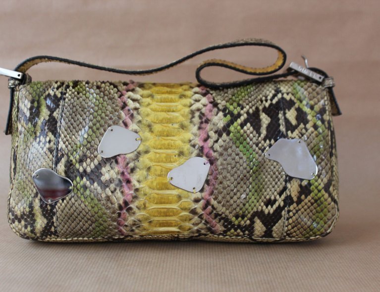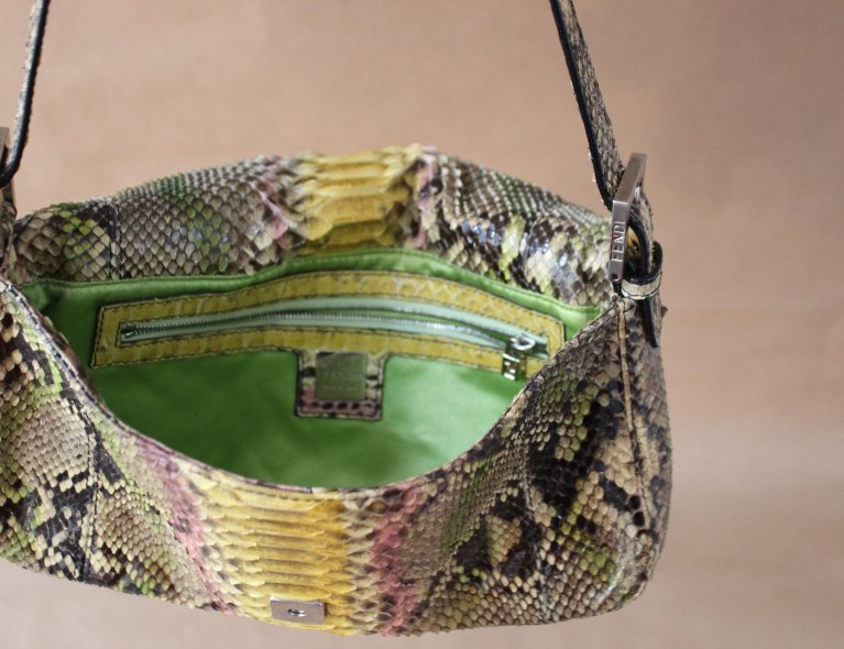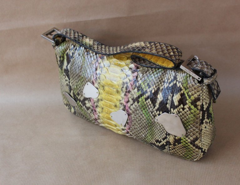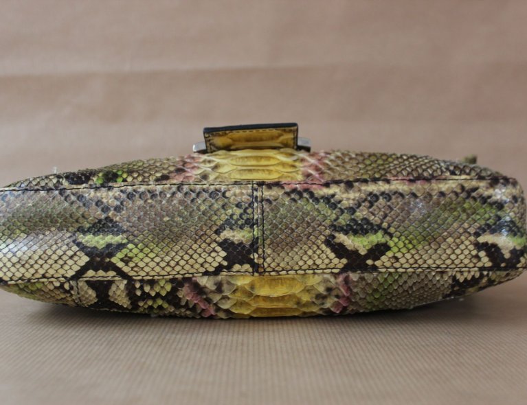 Regenbogen-farbene Pythonleder-Baguette, 26x14x4cm, top condition!