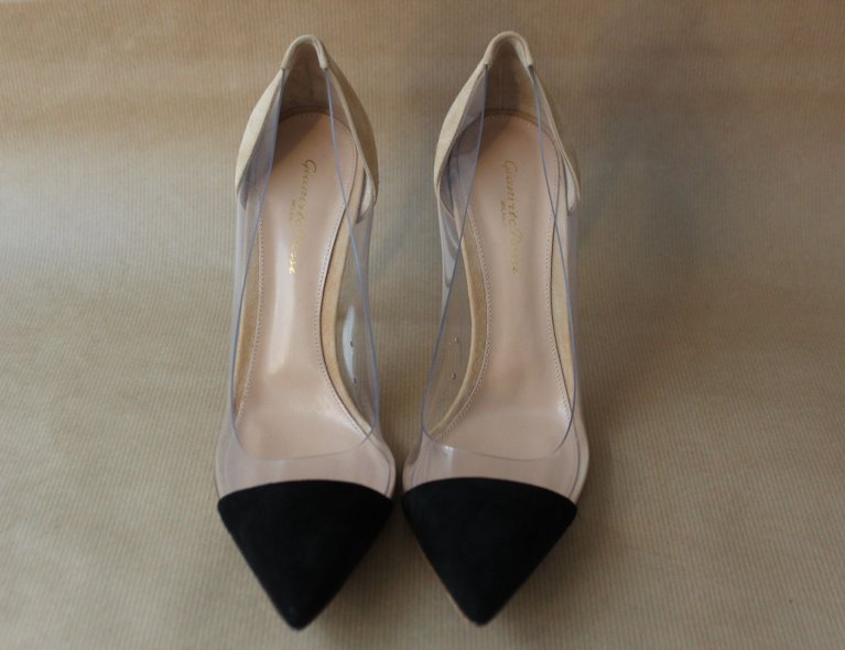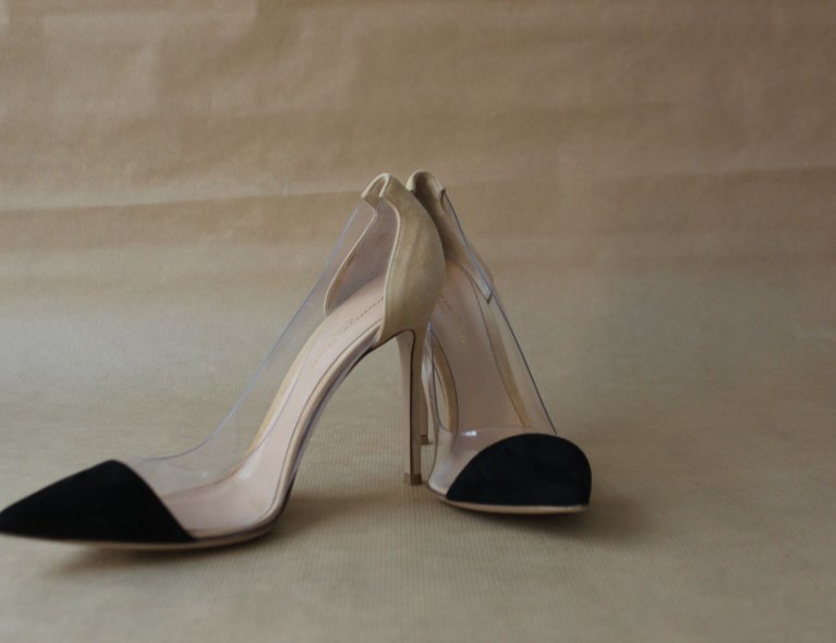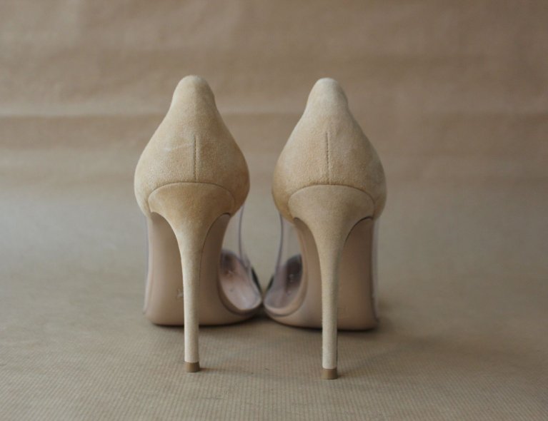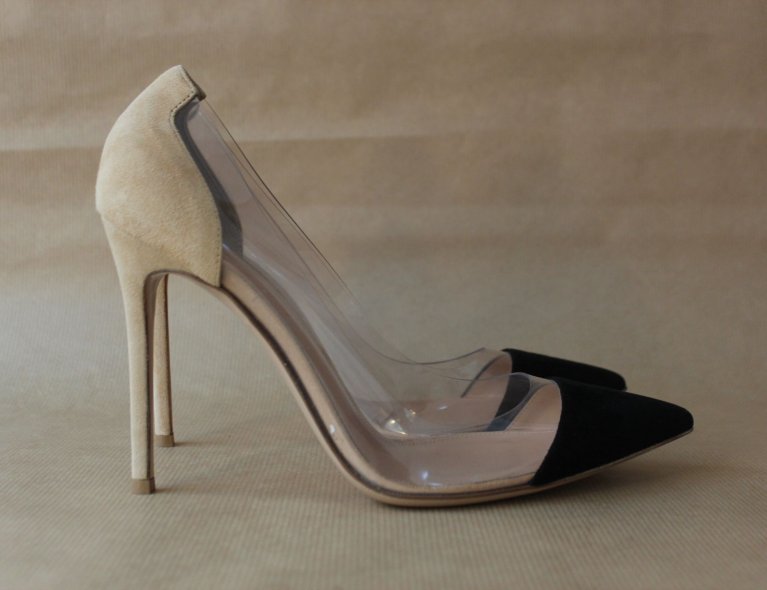 Sandfarbener Wildleder High Heel mit schwarzer Wildleder-Spitze und Plexi. Gr 40 1/2 , ein mal sehr kutz getragen, top top condition.