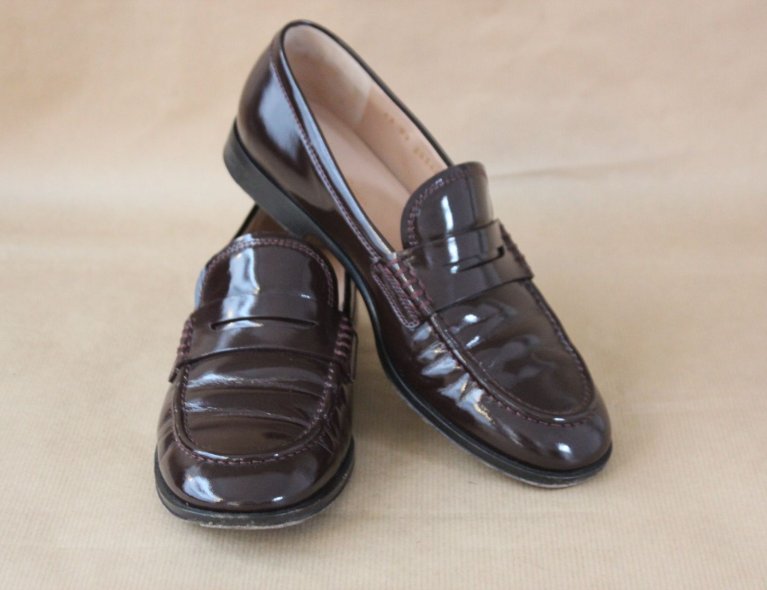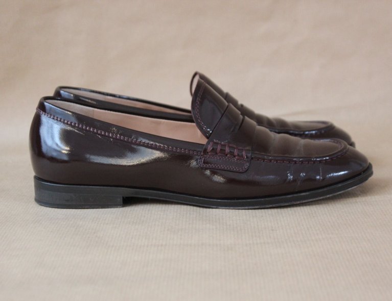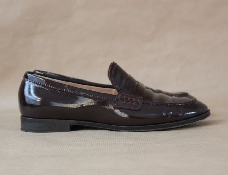 Rotbraune Lackleder-Loafer, Gr 37 ½, leicht benutzt, top condition.