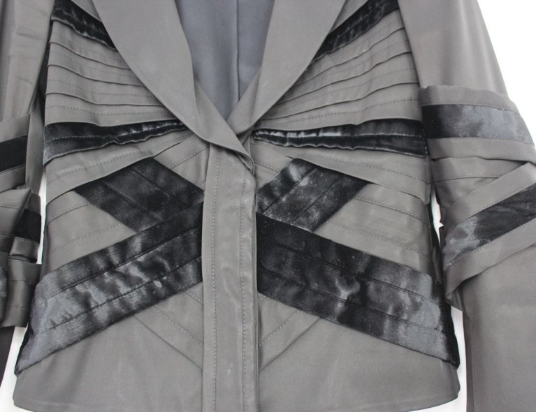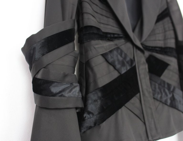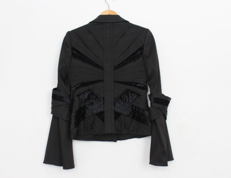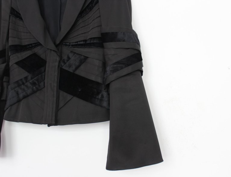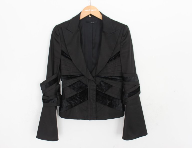 Schwarzer, aufwändig gearbeiteter Blazer mit Trompetenärmeln, Gr 36