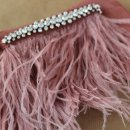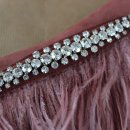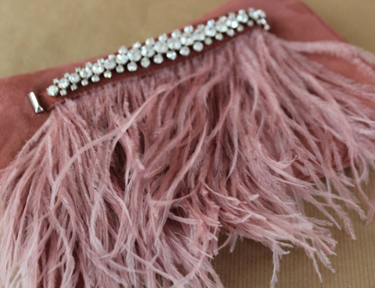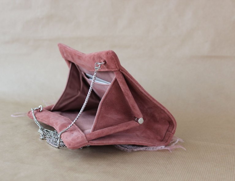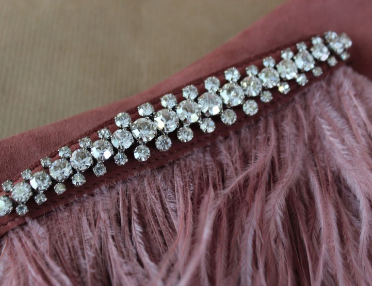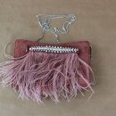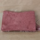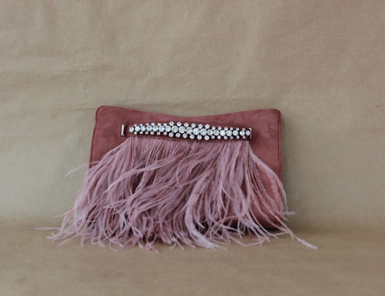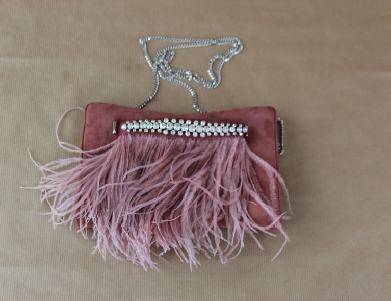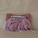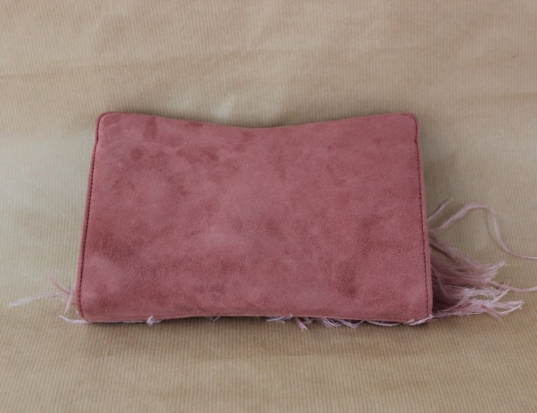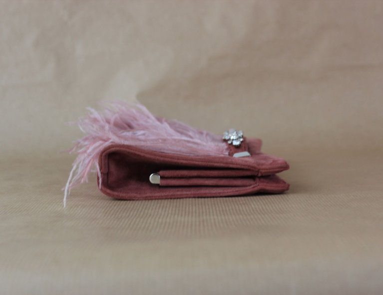 Wunderbare Wildlederclutch rosafarben mit Straß und Federn! Eine Schau! 22,5x15cm