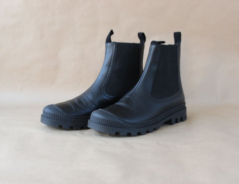 Schwarze “Matrix” Boots aus Leder mit Gummikappe und verschweißter Sohle, Gr 38, 1x getragen.