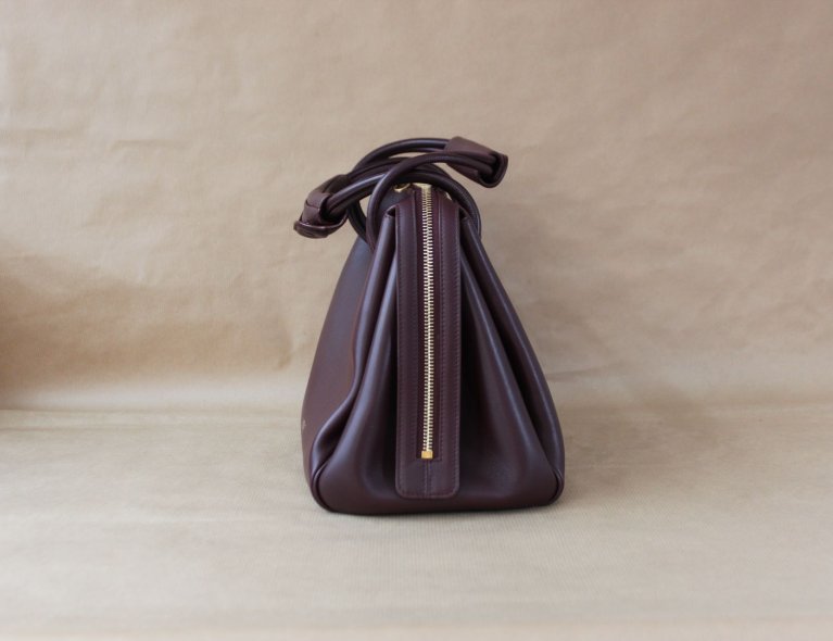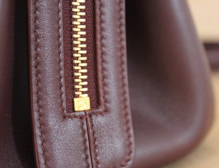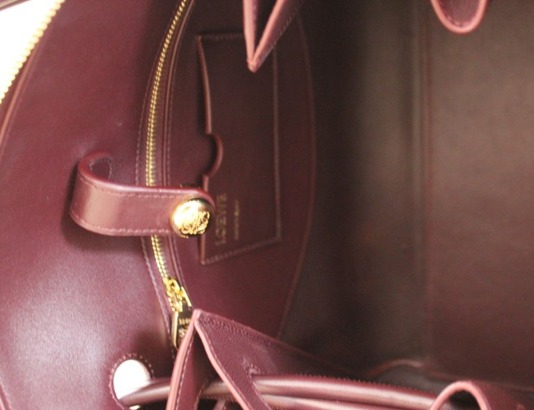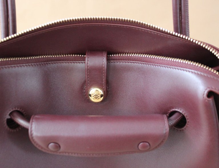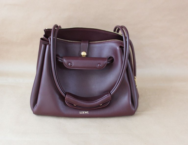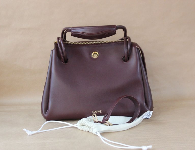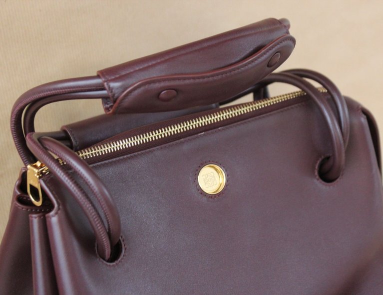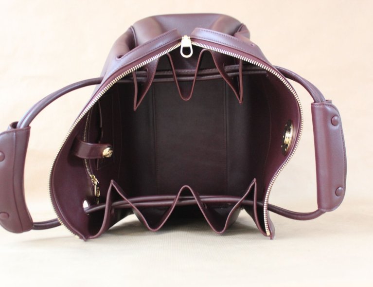 Diese edle burgunderfarbene Kalbsledertasche kann extrem weit geöffnet werden, ist in umgehängten Zustand aber automatisch geschlossen, auch wenn man nicht den Zipper nutzt. Gefüttert mit weichem Lammleder, 28x23x11cm, Top condition!!
