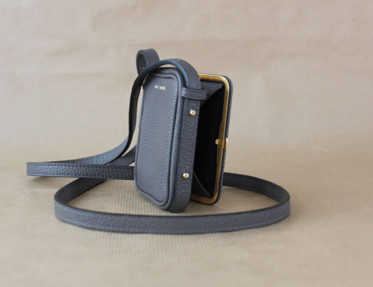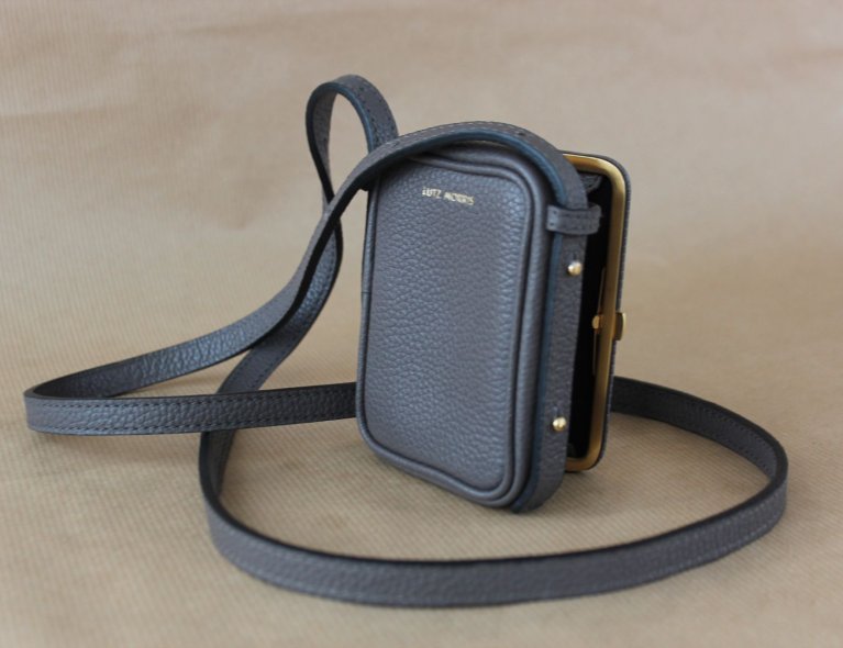Kleine Ledertasche mit Metallrahmen aus 24 Karat vergoldetem Edelstahl. Neu!! 10,5x8x3,5cm