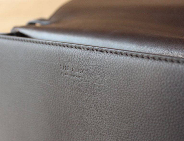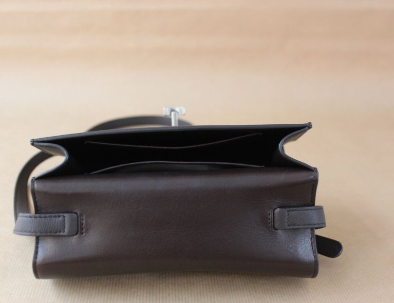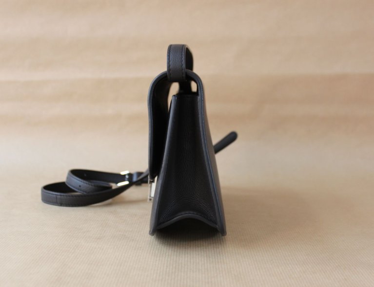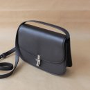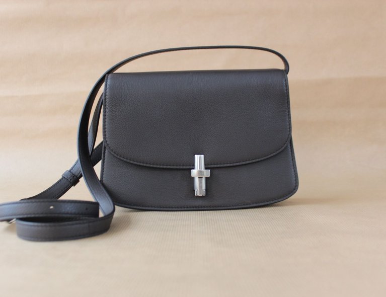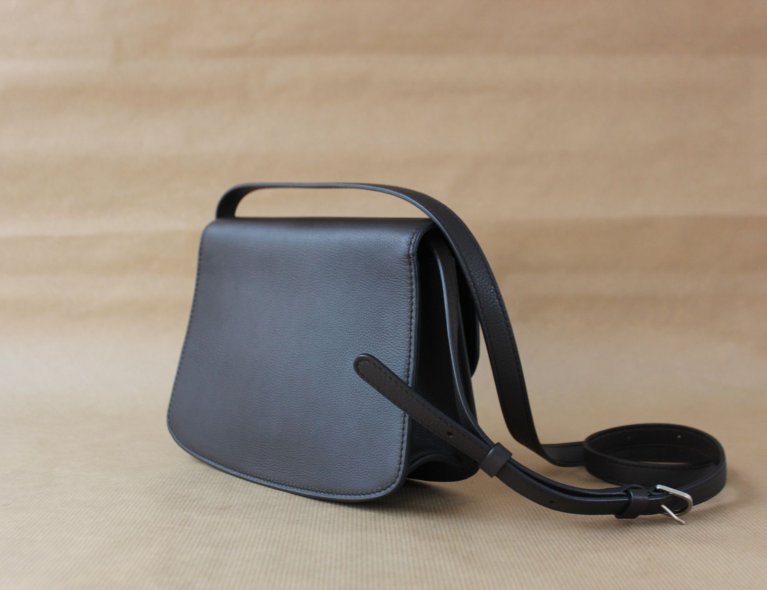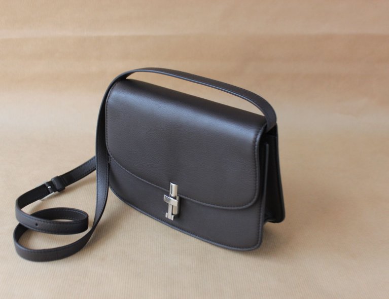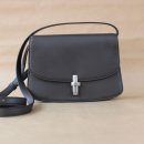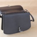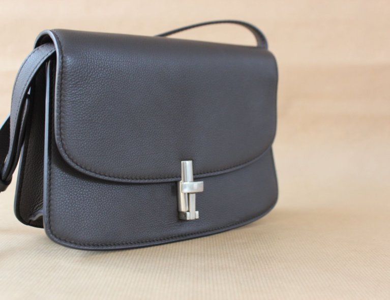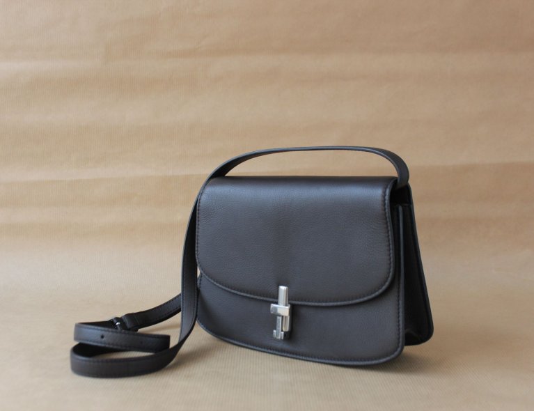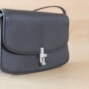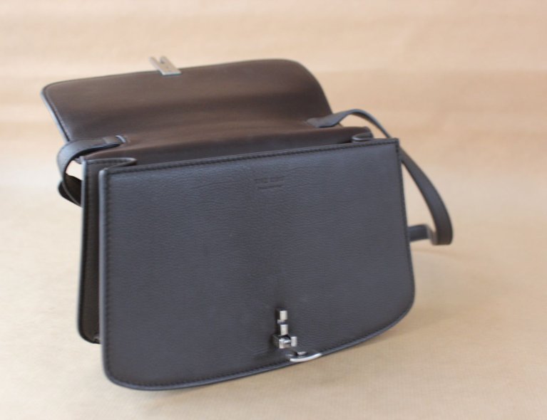 Dunkelgraue Kalbsledertasche mit Umschlagklappe und mattiertem Silber-Verschluß (22x15x7cm) Top Condition!
