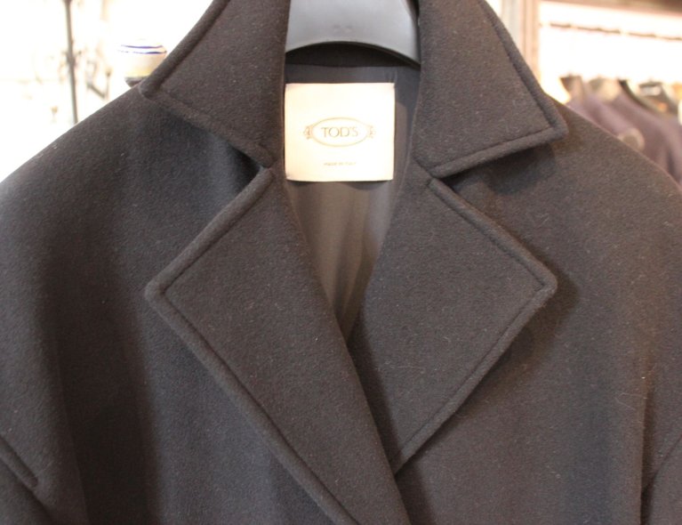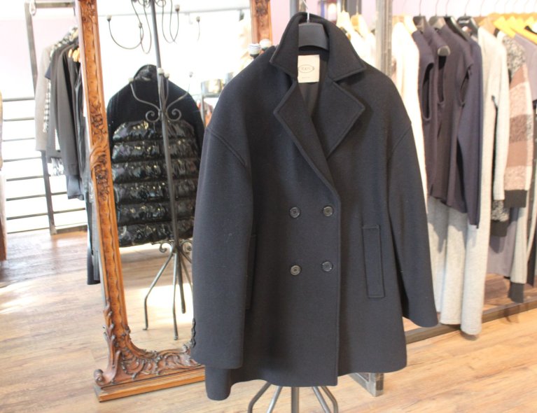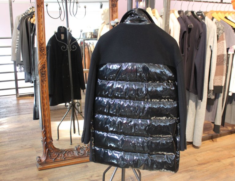 Schwarzer Kaban in Wolle/Cashmere mit warmem Lack-Daunen-Rücken, Gr 38 (fällt größer aus).